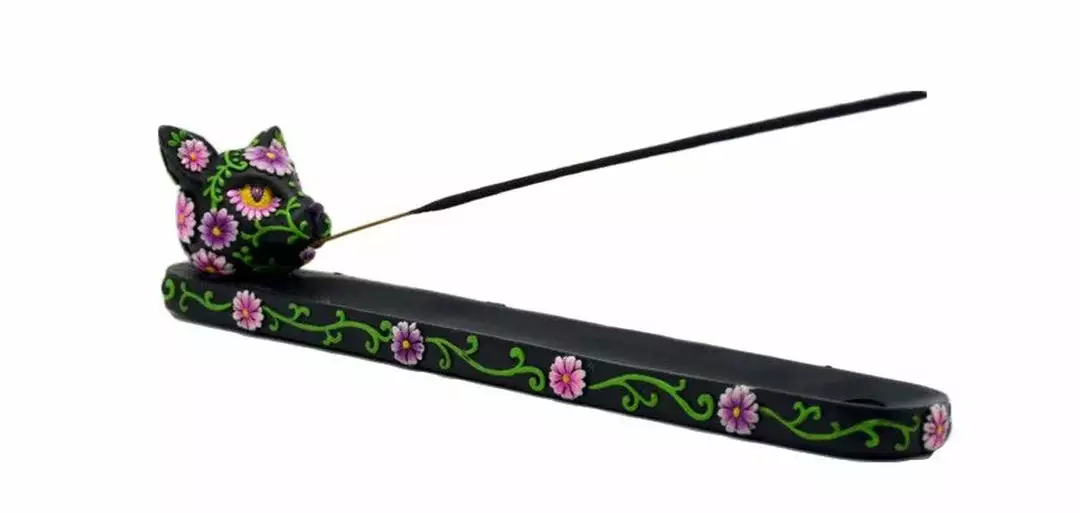 BOB Headquarters 10″ Day Of The Dead Black Cat Incense Burner Incense And Incent Holders