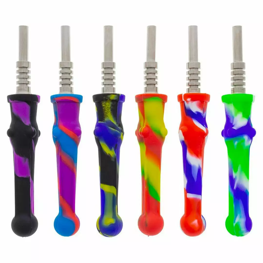 For those times you want to take a quick hit, reach for this 6.5″ long silicone vapor straw with a removable quartz nail. The body of the straw is made of food-grade silicone and the 14mm male tip is made of quartz glass. These silicone dab straws are the perfect portable option for on the go dabs. Sold in assorted colours that may differ from images.