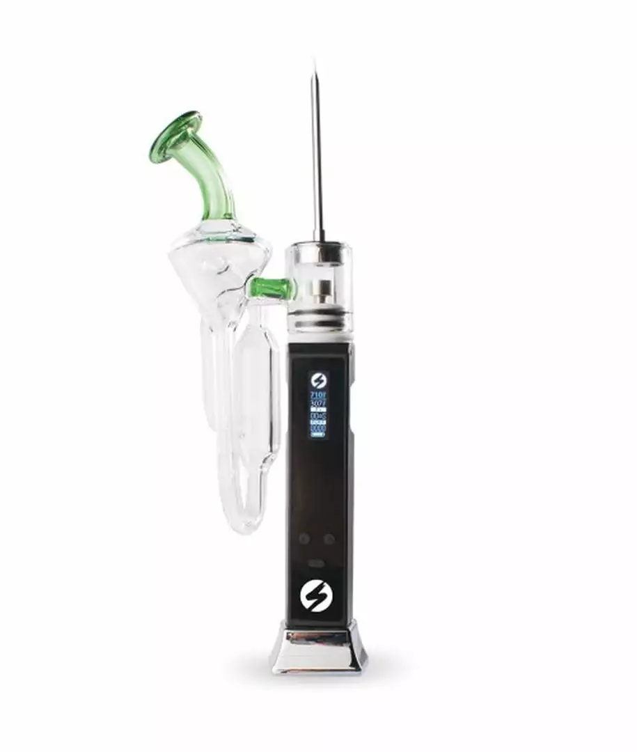 The Sutra DBR Portable ENail Kit by Sutra Vape makes a concentrate or essential oil vaporization compact and less cumbersome than its regular-sized counterparts. With four different nails and a rechargeable battery, the DBR is small without sacrificing any components that allow it to have an ideal vapor payoff. It has an integrated digital display to make heat selection streamlined and simple. The DBR also comes with a water filtration system attachment that makes every draw clean and satisfying.