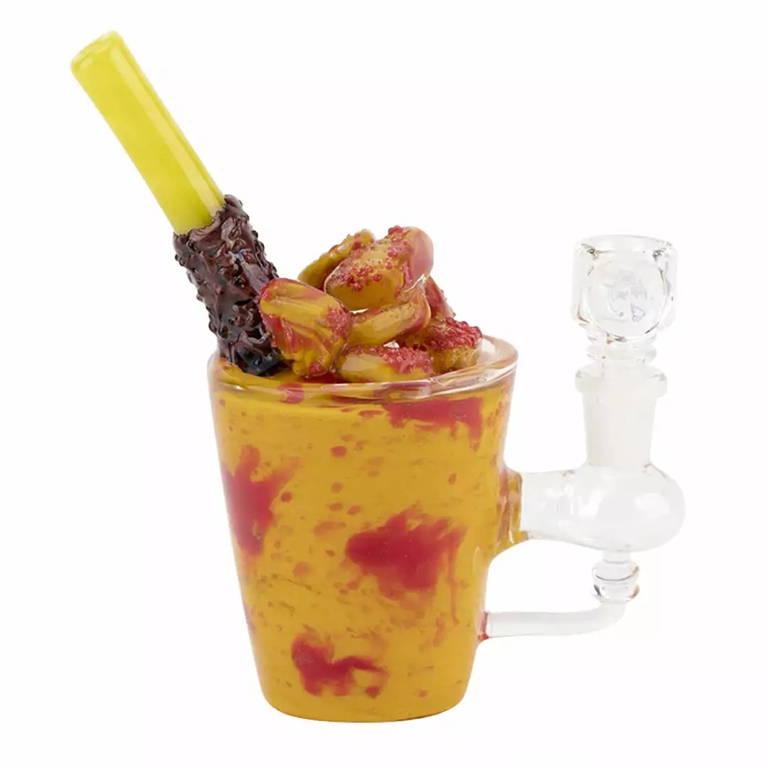The Empire Glassworks Mangonada dab rig is a delicious-looking fruit and chile concoction that hits smooth and spicy. It’s is a celebration of how sweet(and hot) summertime is, all in the palm of your hand. This spicy little dab rig packs a big flavour with super-smooth diffusion for very chill hits. Best of all, this chill glass deserves a top shelf space for its power but is happy to let you savour its sweet look too. The fun is both inside and out with this hand-crafted glass.