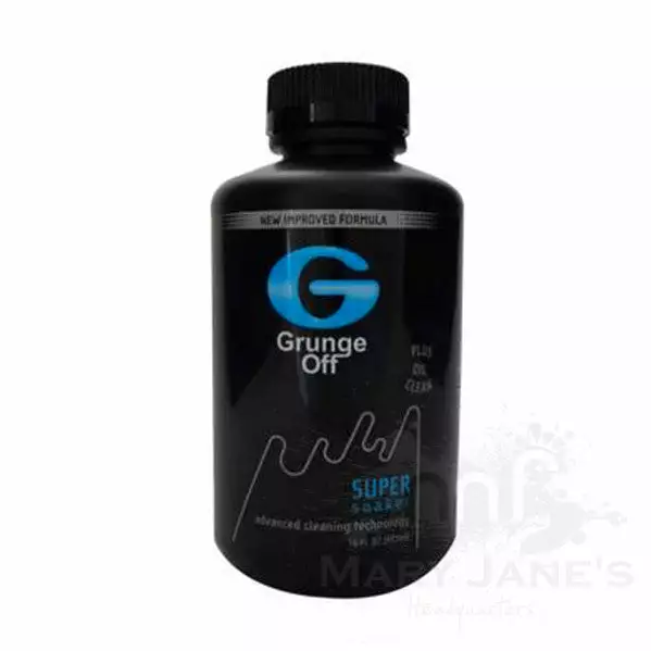 Grunge Off Super Soaker: Grunge Off Bong Cleaner is an exclusive formulation designed to cut through grunge and tar residues with ease, leaving glass water pipes and pipes clean and scratch-free, Due to the unique non-abrasive formulation Grunge Off is a cleaning technology that protects your glass collection from tiny invisible scratches as it uses no grit or salt in its cleaning action.