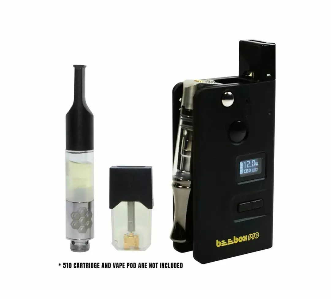 This unique HoneyStick vaporizer allows its user to use concentrate cartridges or vaporizer PODs. Its twisting tank design lets you tuck away the tank while not in use, to protect it from any damage and makes it even more compact! The BeeBox PRO Vape has a high quality, lightweight aluminum body, featuring a preheat function, variable heat settings to customize your vapour experience, and a powerful, high capacity 600mAh battery.Â