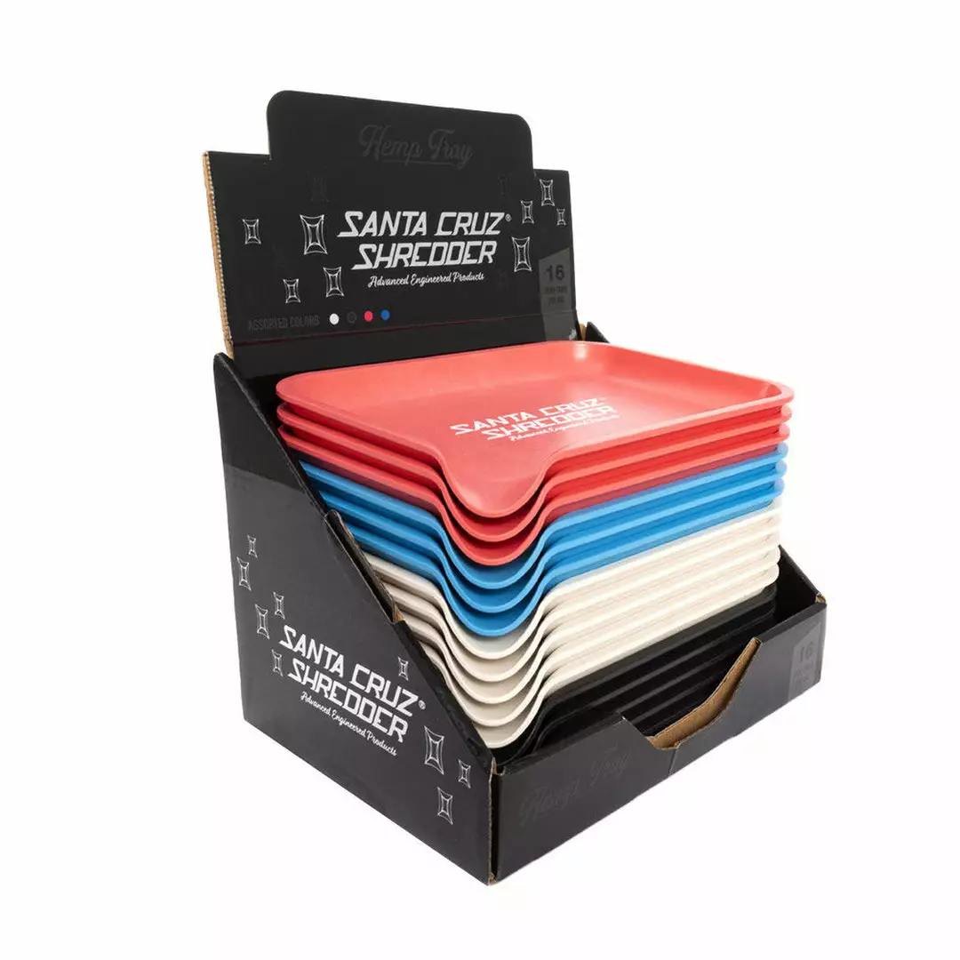Santa Cruz Shredder hemp rolling trays have been ergonomically designed for maximum comfort and usability. Measuring at 7.75″ across and 5.75″ tall, these rolling trays feature a built-in lip designed to funnel the contents of the rolling tray into one corner making cleaning and filling so much easier. Made from 100% biodegradable hemp, these trays are extremely friendly to the plant and extremely strong and durable. These hemp rolling trays from Santa Cruz Shredder will last for years and become a permit fixture of your collection.Â