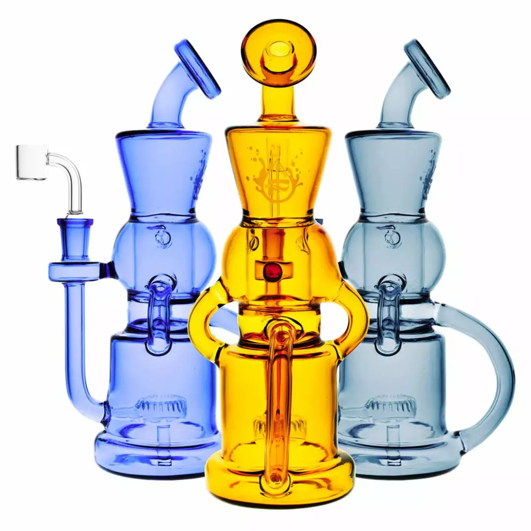 Elevate your dabs with the Checkmate Dab Rig imbued with the noble stature of a king or queen chess piece. This piece provides magnificently smooth vapor with a cerc perc and a water recycling design. Incorporates no-splashback functionality for the most satisfying dab sesh. The rig stands 10 inches tall with a 14mm female joint and included 14mm male quartz banger. Sold in varying colours that may differ from images.
