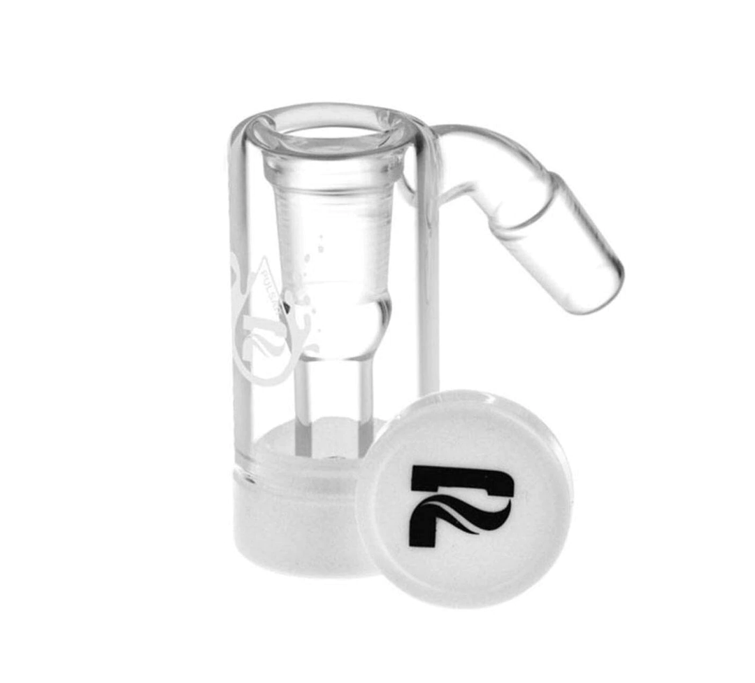 These Pulsar 14mm Oil Reclaimers come in two different styles, either with a glass bottom or silicone bottom and attaches to your water pipe or rig, with either a 45 or 90 degree joint. These pieces catch reclaim as it drips down through your banger nail so that you never loose a drop of your stash. Designed to maximize efficiency and minimize lost dabs. These reclaimers feature either a 45 or 90 degree elbow, 14mm female/male fittings, and an attached silicone container with cap.Â