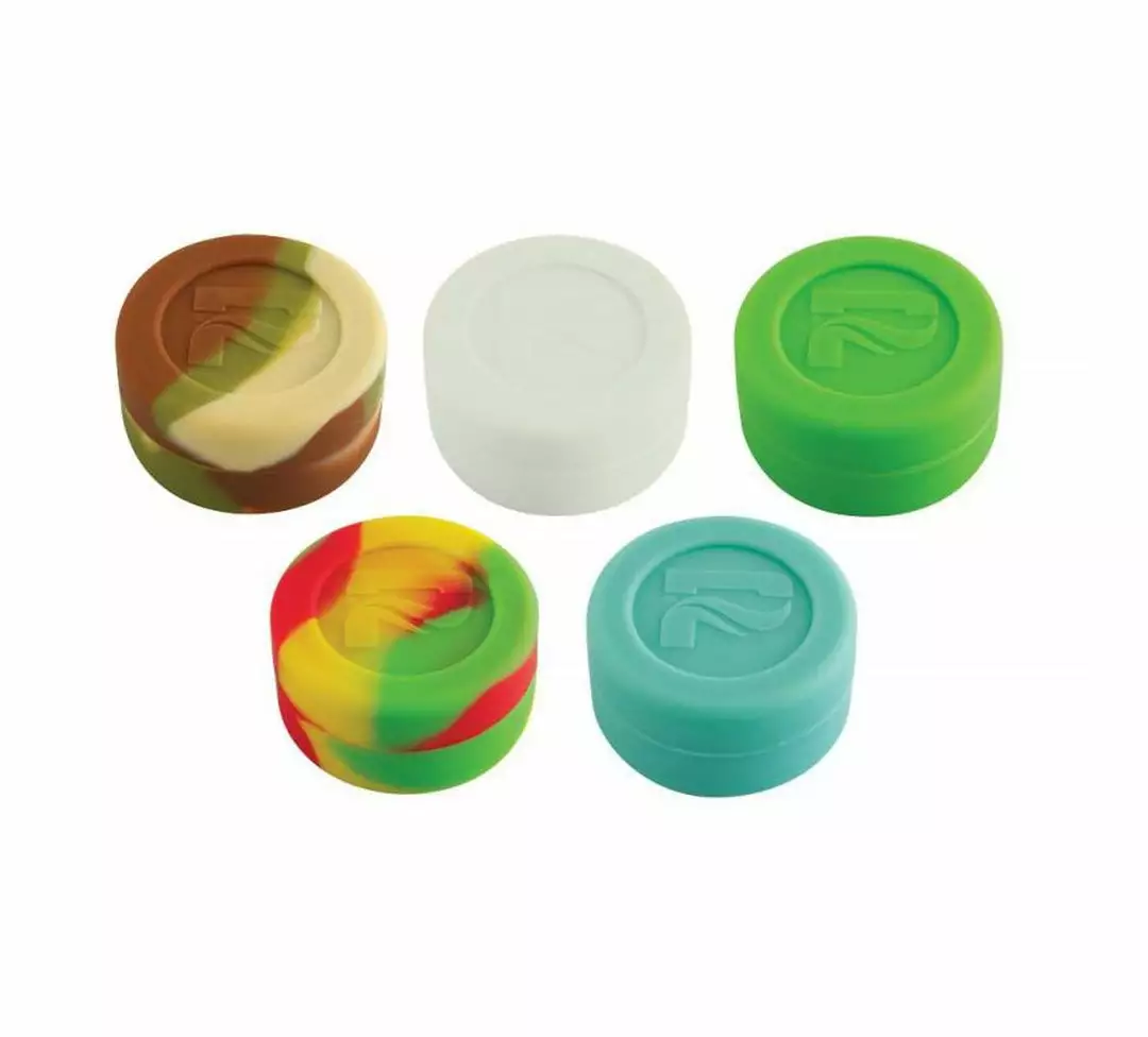 Silicone containers are great for storing your favorite herbal extracts. They are constructed with quality silicone so your extracts won’t stick. Features threaded cap and 7ml capacity. Diameter measures 38mm. Containers come in an assortment of 5 colour schemes.