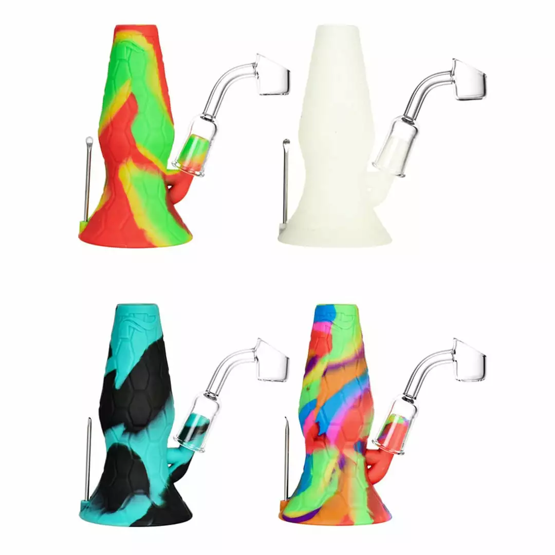 Heat things up with the Pulsar RIP Series Mini Lava Flow Dab Rig. These dab rigs stand 4.5″ tall and are made of platinum-cured, medical grade silicone. These mini rigs feature a removable base, so the user can easily access the inline perc for removal and cleaning. The base of the pipe has an on board storage for the included concentrate container so your dabs are always together with your trusty rig. These durable and versatile water pipes include both a 14mm female quartz banger and a glass herb slide.