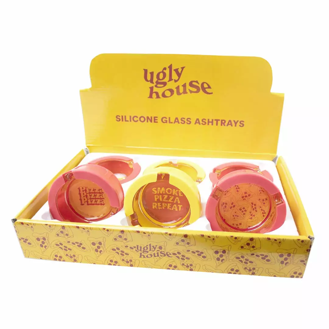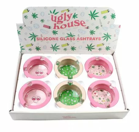 Ugly House silicone-lined glass ashtrays make the perfect statement piece when you’re ready for a smoke. These ashtrays measure  4″ x 4″ x 1″ Deep and feature 3 indents to hold your smoke when you need a break.