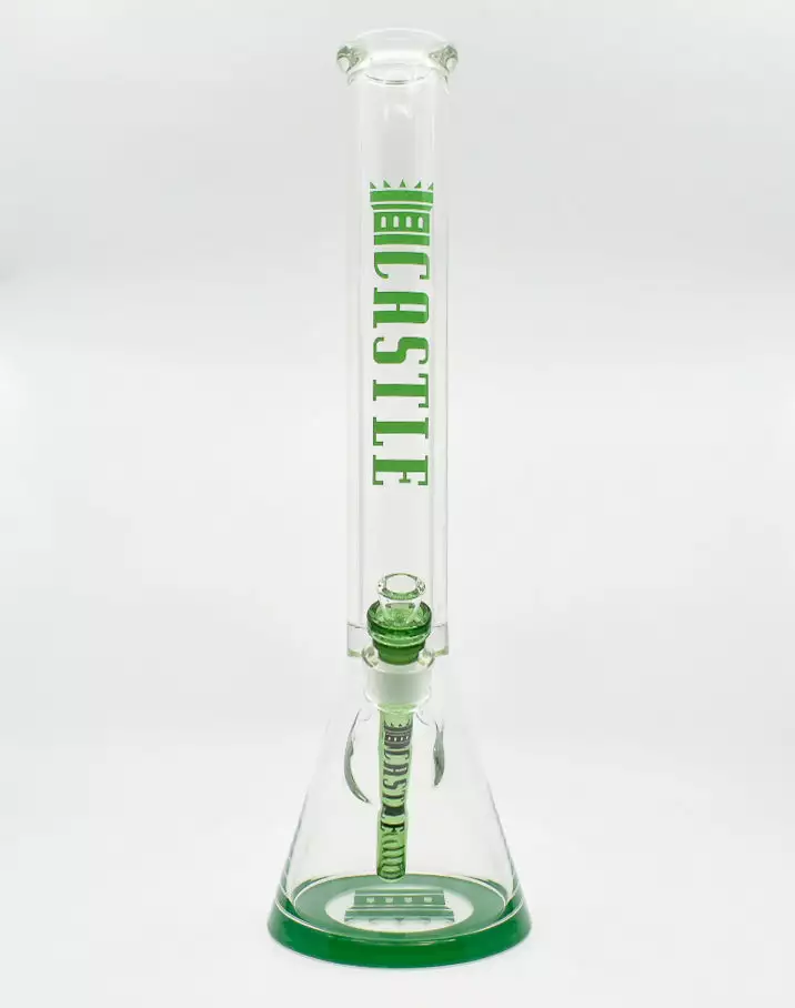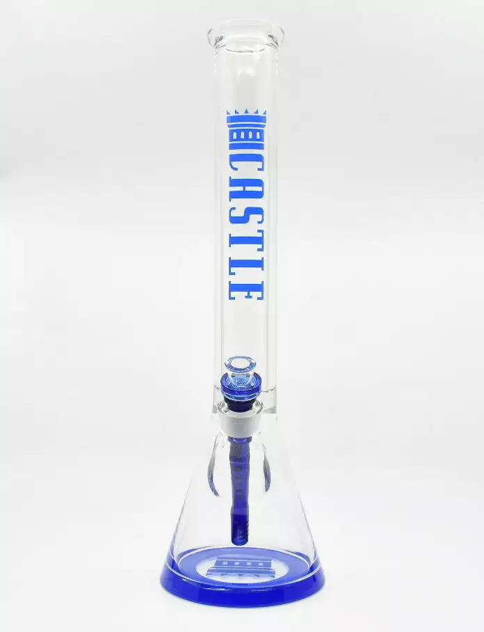 These plain logo beakers from Castle Glass are their most basic beaker bongs, but that does not mean they are any less impressive. All of these plain logo beakers have an even thicker base at 15mm.