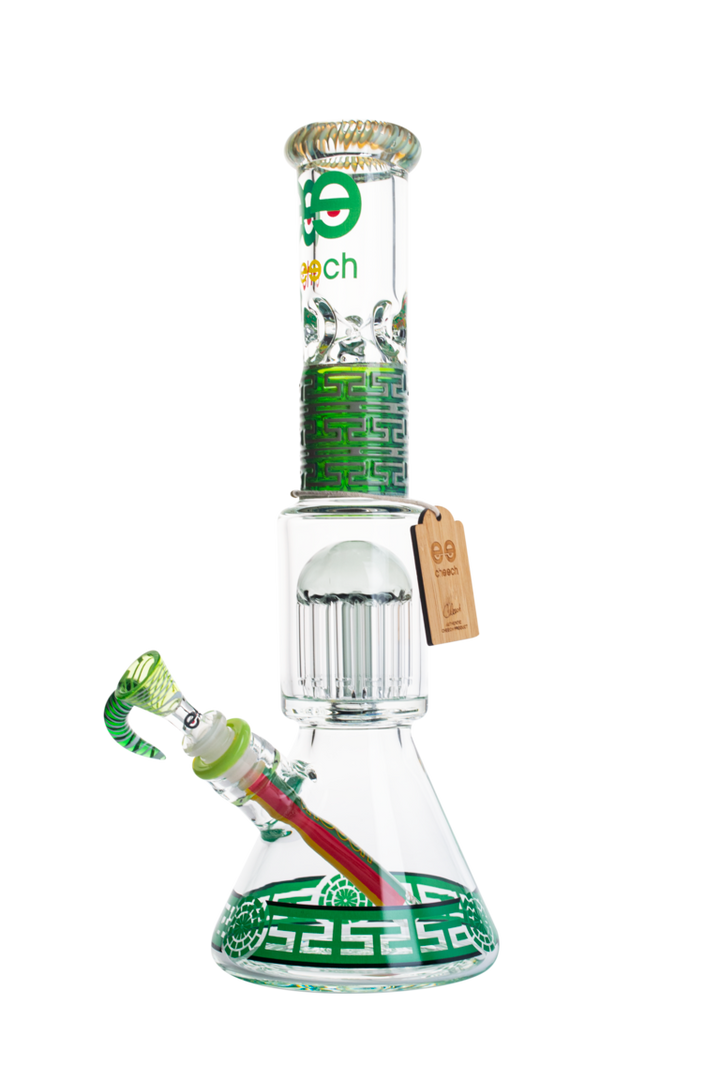 This Cheech Glass 14″ Beaker Bong features a 12 arm tree perc, and an ice pinch for cooling. These units are a great addition to any collection.Â