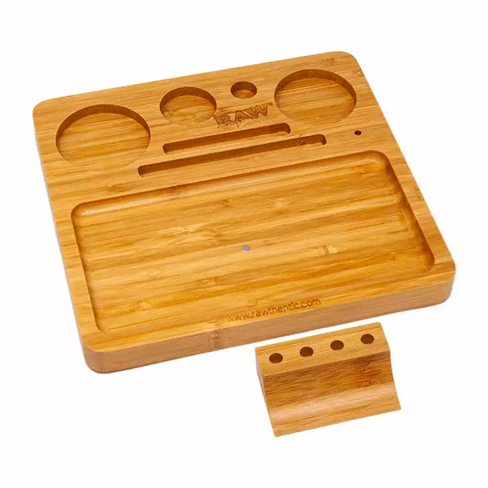 1 Piece Tray: Raw Natural Bamboo Tray Includes a bamboo scooper. It’s made of natural bamboo. It’s size 8 Inches X 8.5 Inches with weight 438 Gm.Â