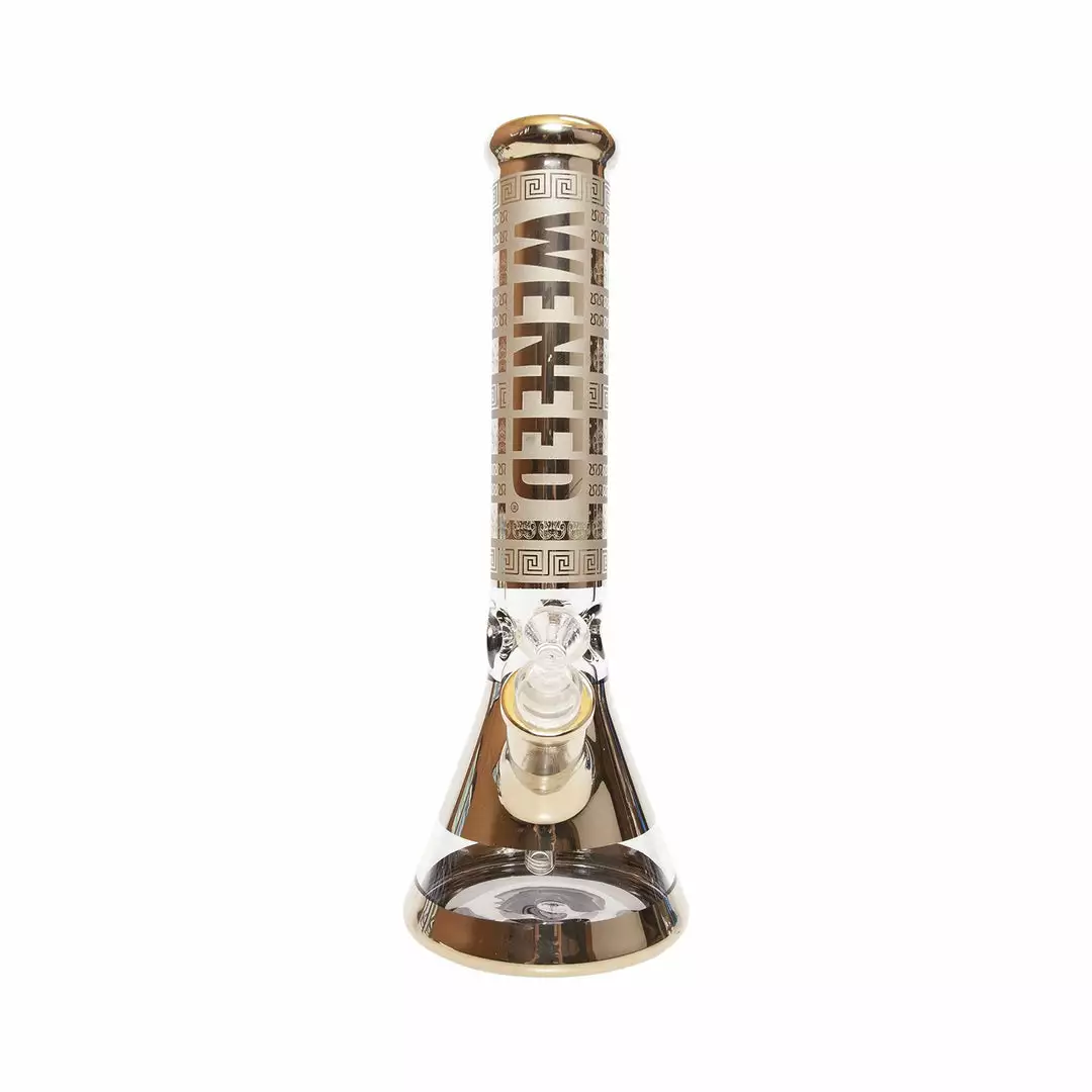 Another set of high-quality beaker bongs with ion plated Pictograpic decals and the WENEED logo standing 14″ tall and 7mm thick.Â