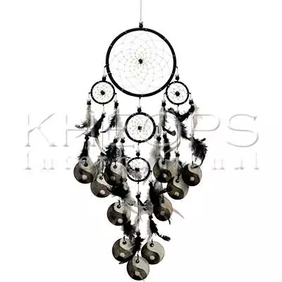 Ying Yang:Â Feel and enjoy balance with our Yin Yang Dream catcher. Adorned with many Yin Yang symbols to which are attached black and white feathers, this outstanding dream catcher is surely bound to inspire personal and spiritual growth.