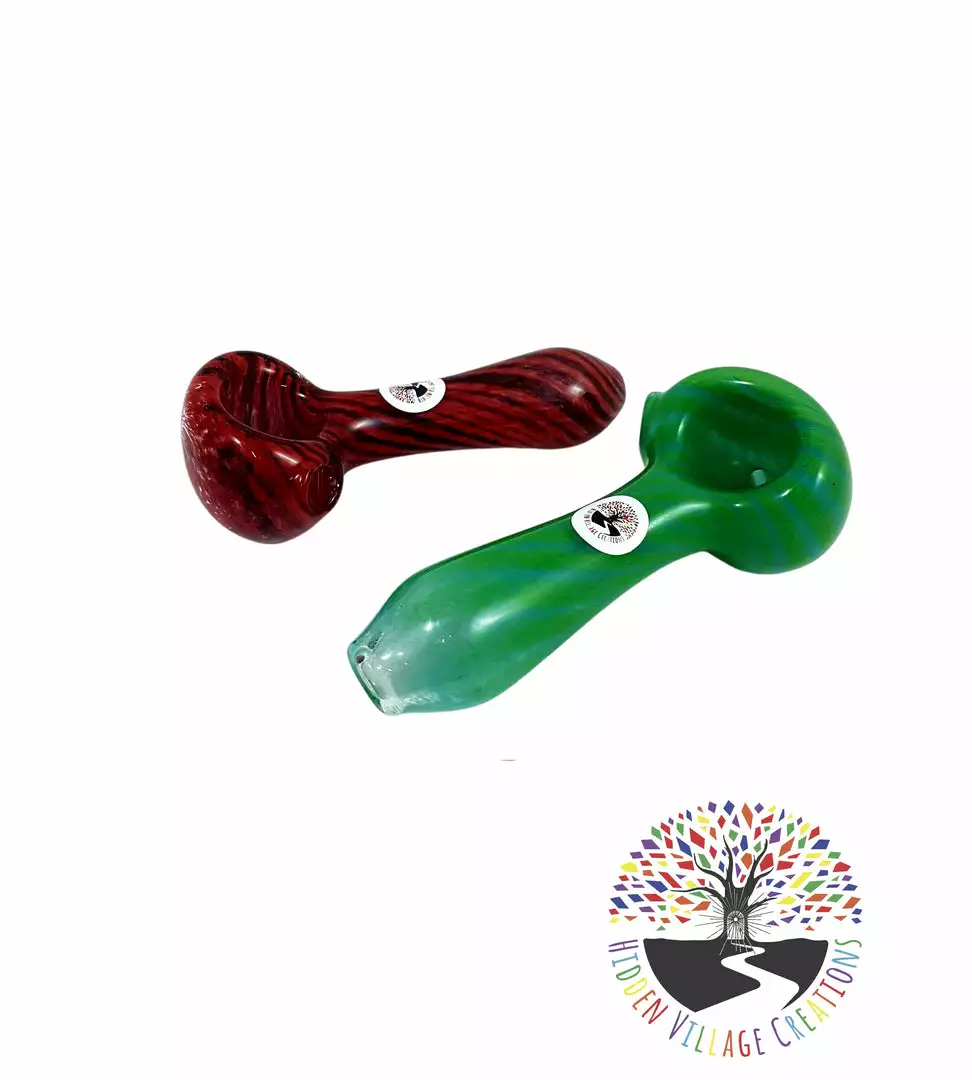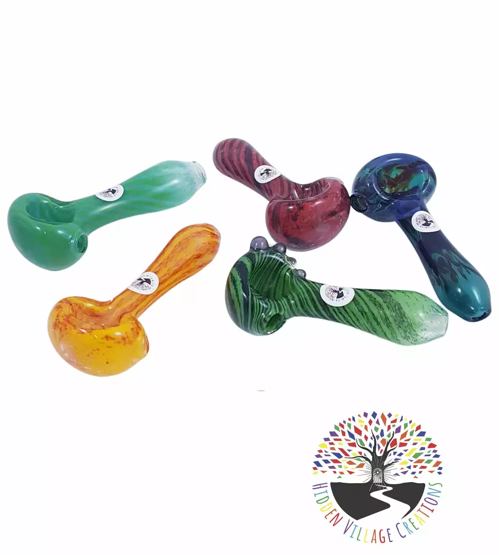 These Frit Glass pipes from Hidden Village Creations come in a vast array of beautiful colors and patterns and are one of our top sellers as they are done in a shock resistant style.