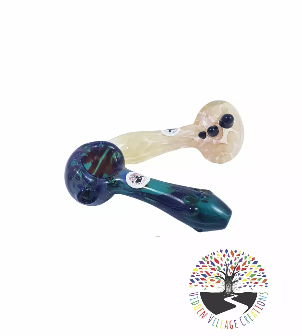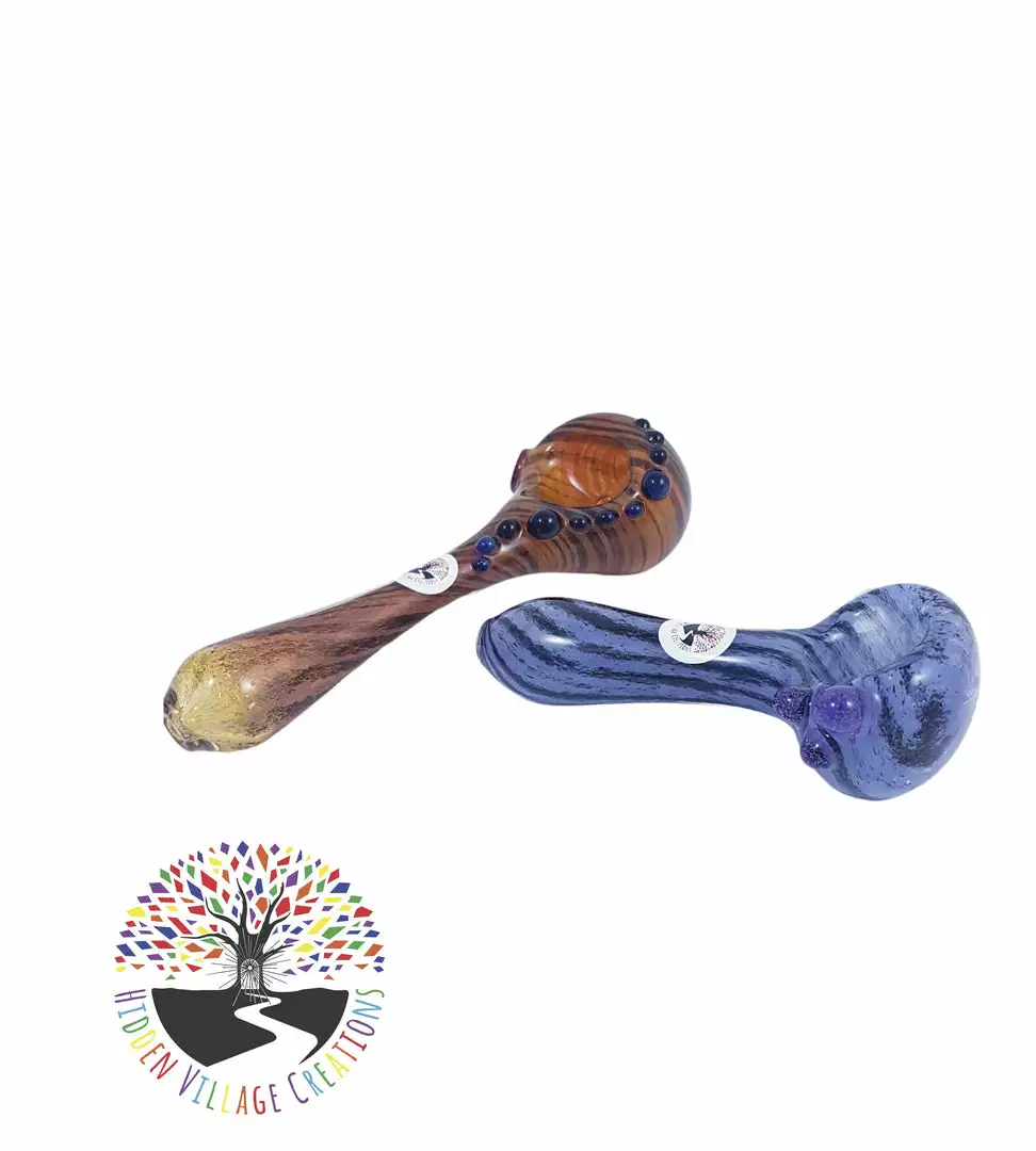 If you’ve been a fan of Hidden Village Creations Frit Glass Pipes you’ll love these more detailed and stylized versions each featuring a unique colored dot pattern.Â