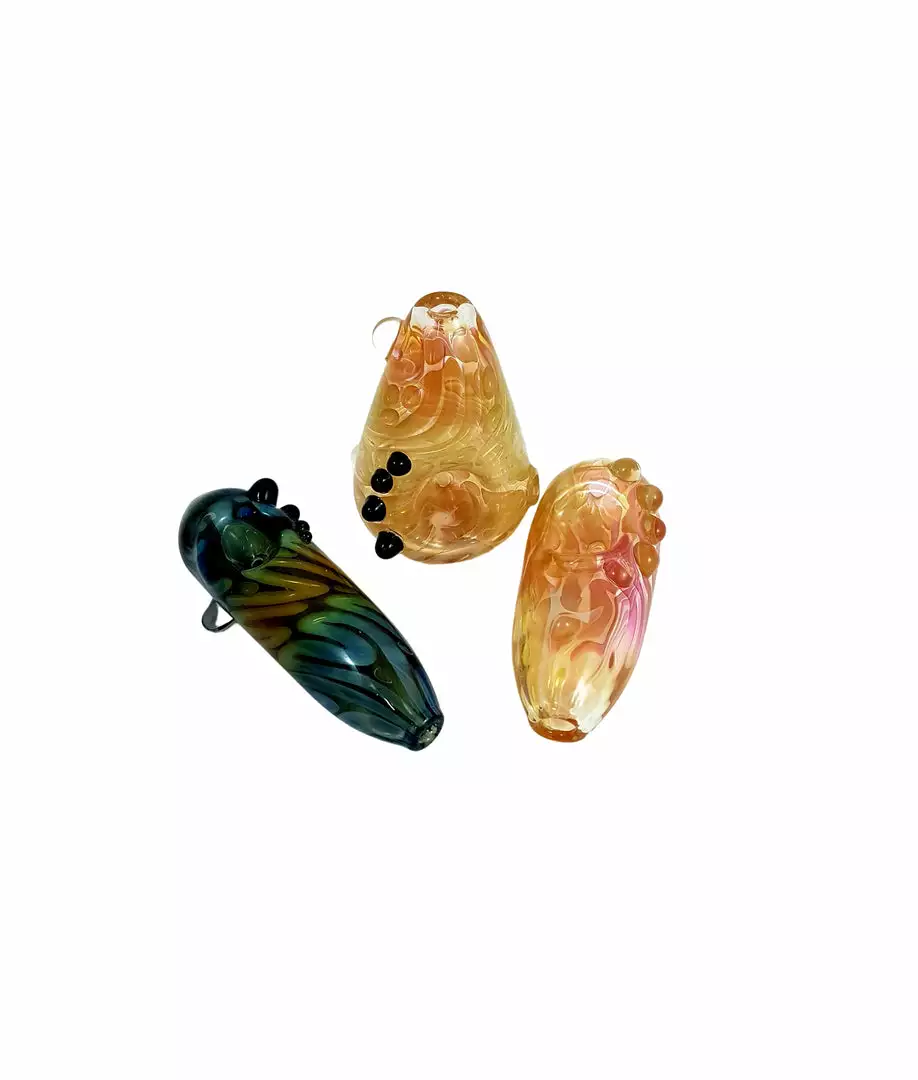 Feathered Metallic Pipes – These beautiful new heady pipes from Hidden Village Creations are each unique and have an amazing array of colors with a metallic finish that will look amazing when you’re lighting up.Â