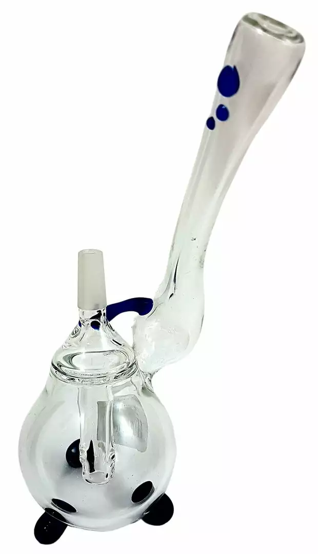 This Hand-Blown 6″ Tripod Leaning Tower Globe rig with blue accents fits a 10mm female banger/nail. The tripod set up offers stability for your dabs with a good distance from your nail. No mustache singeing on this piece.