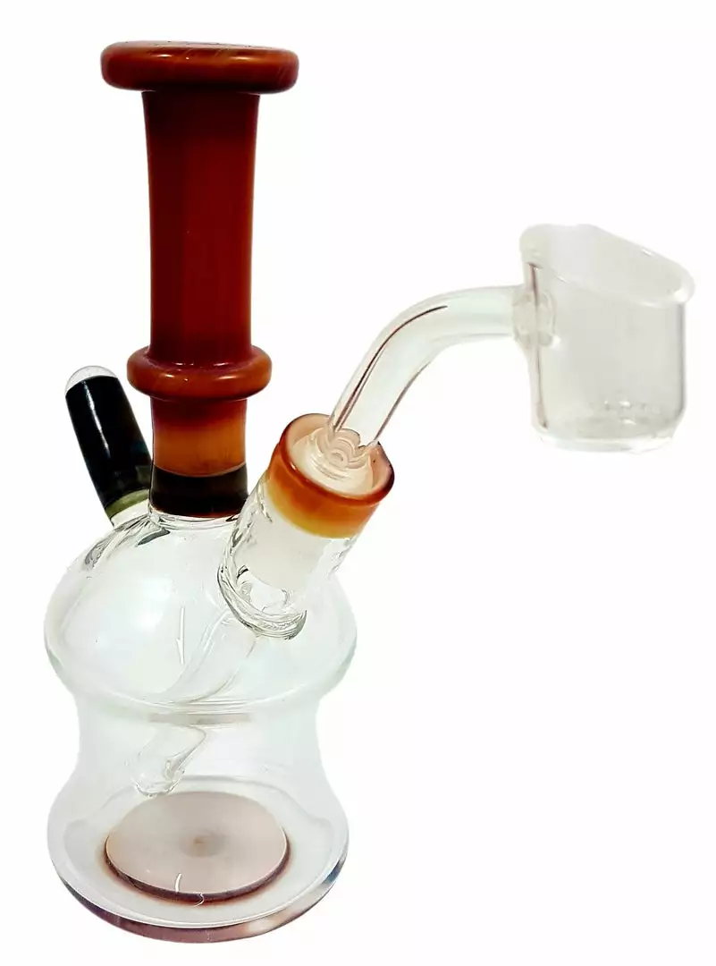 This piece is similar to the other T.H.C. Glassworks rigs though is somewhat more simplistic while also featuring beautiful colored line work. This rig features a 14mm 45 degree female joint.
