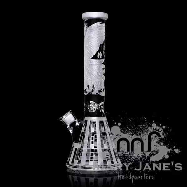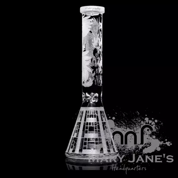 These beautiful beaker bongs made by Milkyway Glass have a sleek, stylish look to them that will be a center piece for sure! Not only are they incredibly good looking, they are also 9 mm thick! All of they’re designs are etched in and frosted so they will never wash off!