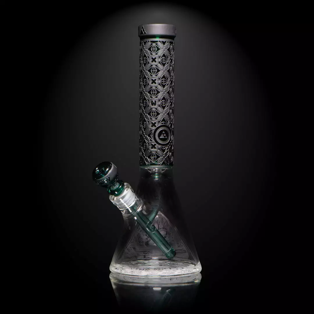 This 15” beaker takes our classic X-Morphic pattern to a whole new sub-atomic level…In the original, we took you to the inner 5th dimension, in Evo we sink even deeper into the 6th dimension. Time slows down and new patterns start to emerge, morphing from one into another. With an incredible amount of detail, the more you look, the more you discover. This double layer sandblast.