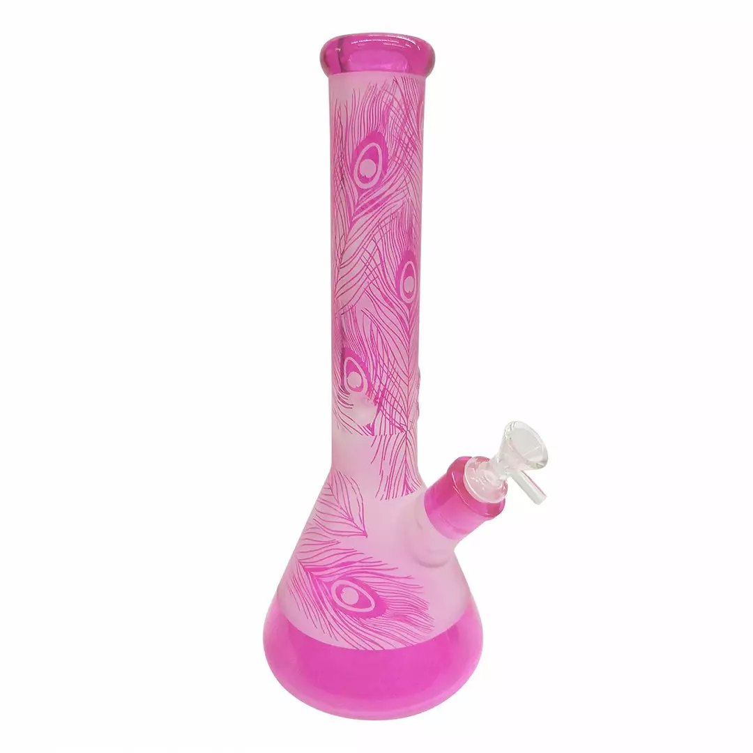 Pink Feathered: If you’re looking for pink and girly then this Beaker Bong is the right fit. Standing 14″ tall and 7mm thick these beauties are functional and flattering.
