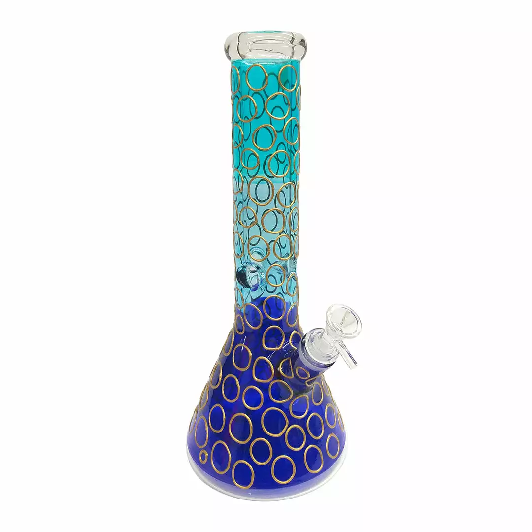 These Dope Glass bongs stand 14 inches tall and are covered in gold coloured rings that adds an elegant touch.