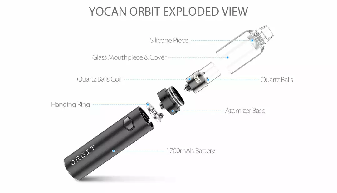 Designed ingeniously, the Orbit is made with exquisite workmanship. With a coil-less quartz cup at the helm, featuring a Top Vertex Airflow System and two Quartz Balls to depict the ultimate aesthetics of vapor while transmitting even heating. Coupled with a 1700mAh battery which can offer 3 voltage levels, the Yocan Orbit is ready to show its madness.