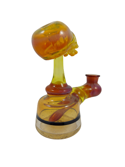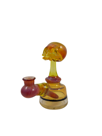Very high quality hand blown 5″ skull UV glow dab rig.Â