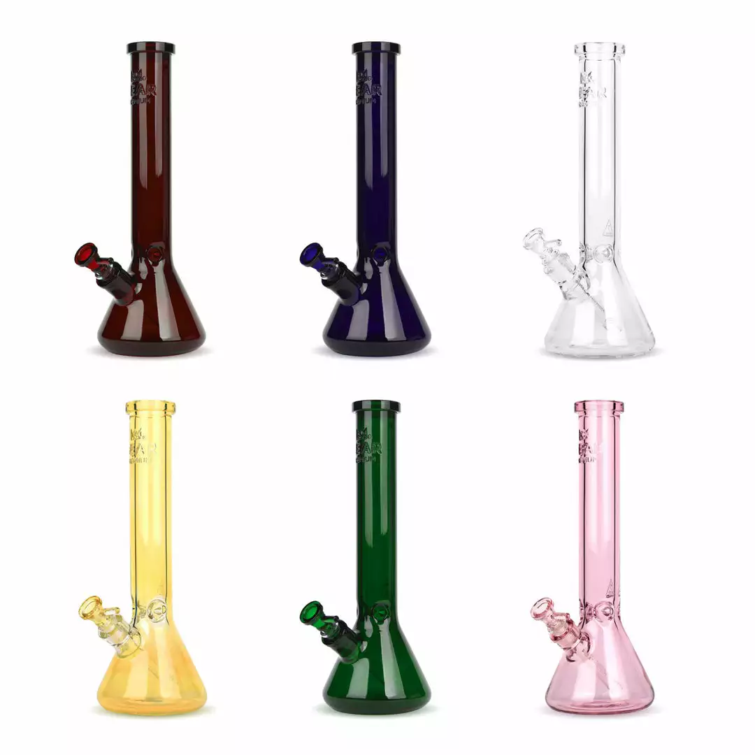 Get the newest Gear Premium 7mm Beaker Bongs in the colors and height you need, ranging from 12″ to 24″ in a variety of pretty colors. These pieces have an embossed GEAR Premium logo, are made from 100% borosilicate glass and feature an extra thick 14mm female joint with a  extra large 14mm Blaster pull-out.