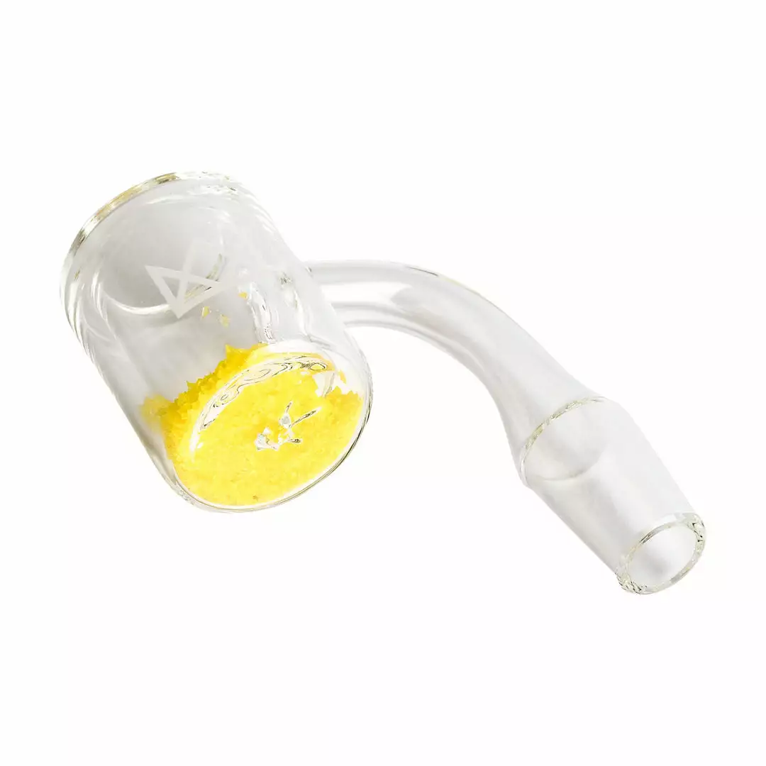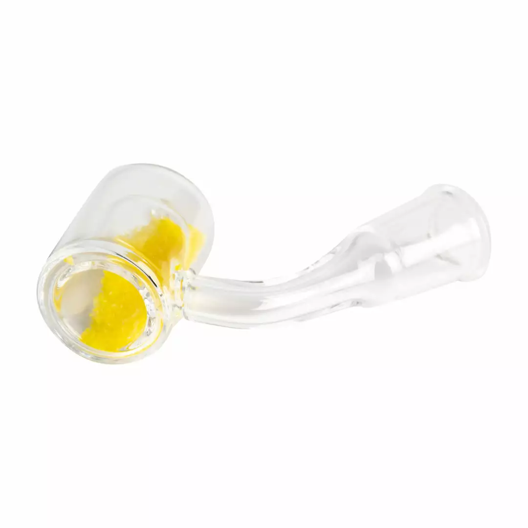These Gear Premium Quartz Bangers act as a thermal banger with an inner chamber that retains heat well. The color-changing crystals around the thermal chamber shifts color from light to dark (yellow to red) as the banger temperatures heat up.