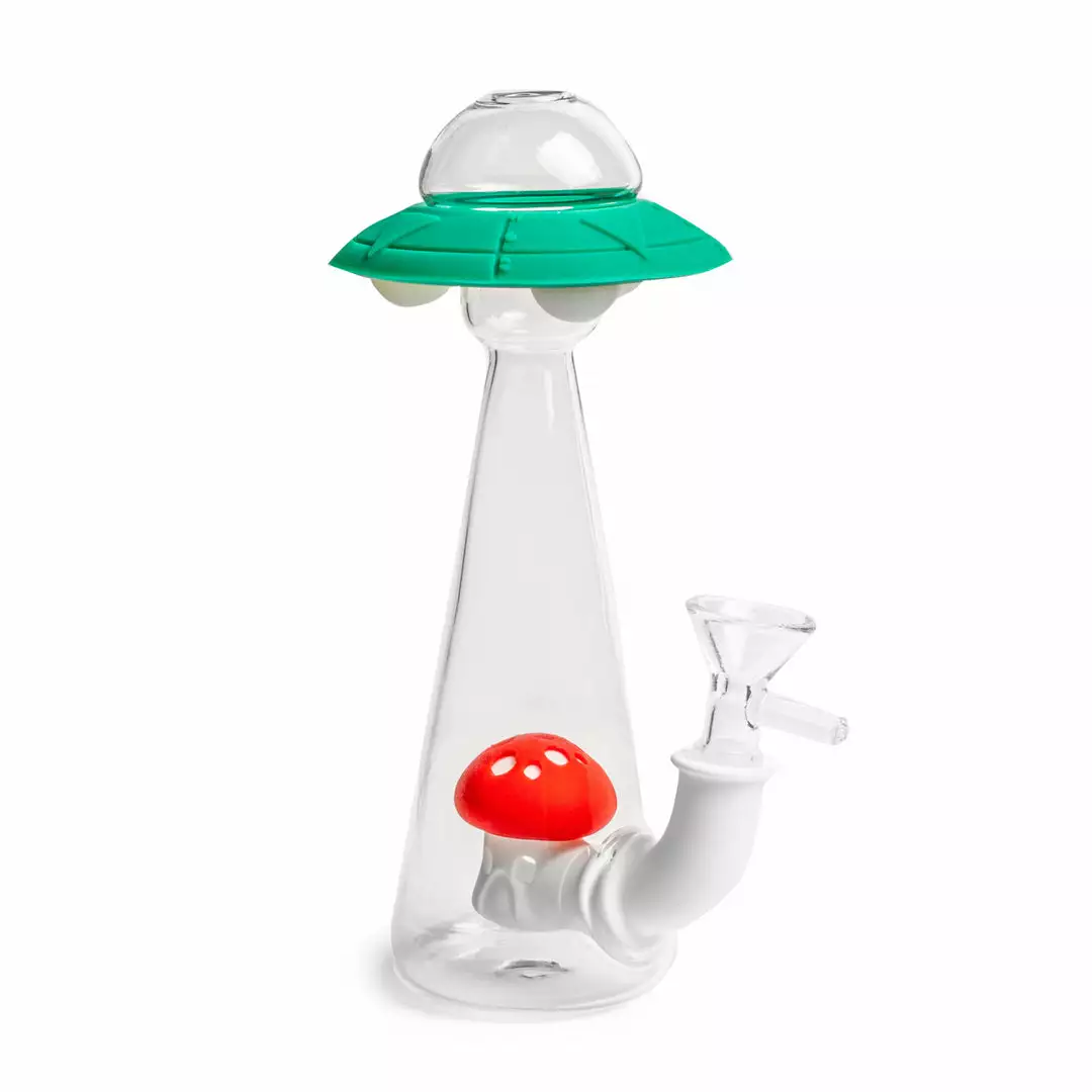 *Bzzzt* This is a transmission from your alien overlords. We’ve detected an unusually high level of munchies on Earth and would like to bring you aboard for further testing. Our Alien Abduction Bubbler includes a signature UFO design and removable glass bowl. Probe is not included. *Bzzzt*