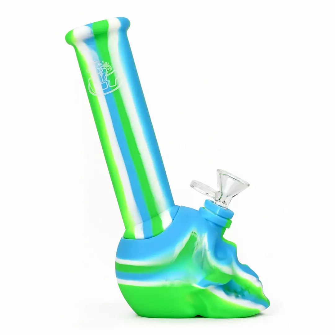 West Coast Gifts LIT Silicone 8.75″ Tall Skull Base Bong W/ Glass Pull Out