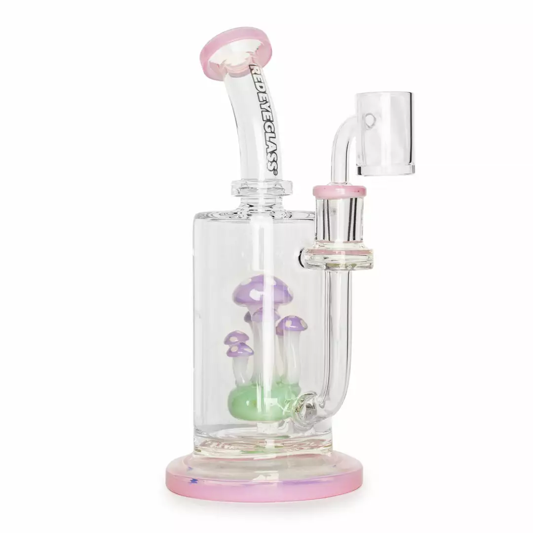 Discover some mushroom magic with the 9″ Mushroom Teacher Dab Rigs from Red Eye Glass®. These colour-accented mushroom rigs include a 5 hole mushroom perc and are made of durable 100% borosilicate glass. Make as mush-room in your collection as possible, because these Golden Teacher-inspired toadstools come in four different colours!