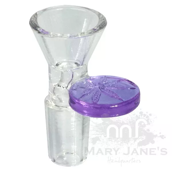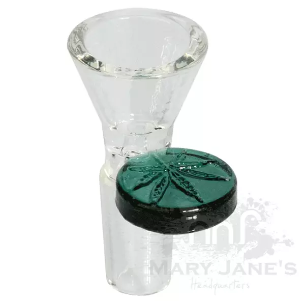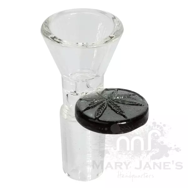 West Coast Gifts Red Eye Glass 14mm Cone Pull-Out Bowl W/ Leaf Stamped Handle