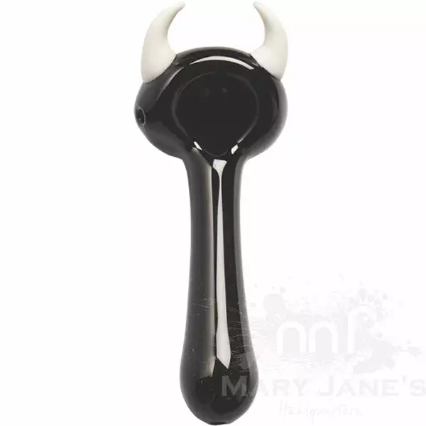 A close cousin to it’s pink horned counterpart, this white horned glasss pipe version from Red Eye Glass fits just as extraordinarily comfortable in one’s hand – and it’s all thanks to those pretty horns!