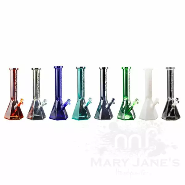 The Hextatic bong comes is eight different colors and is a great choice for a mid sized bong. With it built in ice catch and simple style its a breeze to clean and has great function. Comes with a removable downstem and 14mm slide.