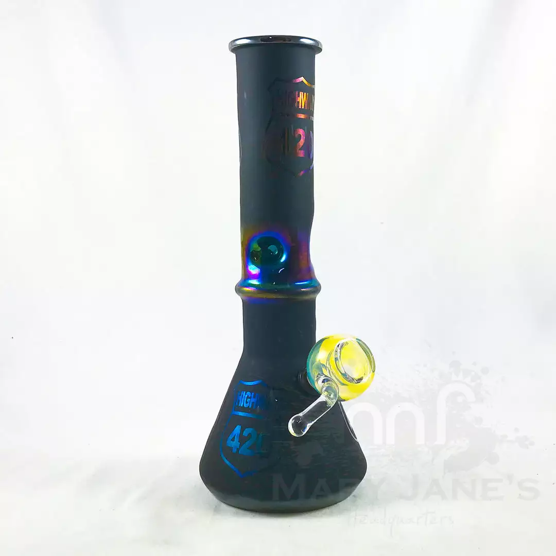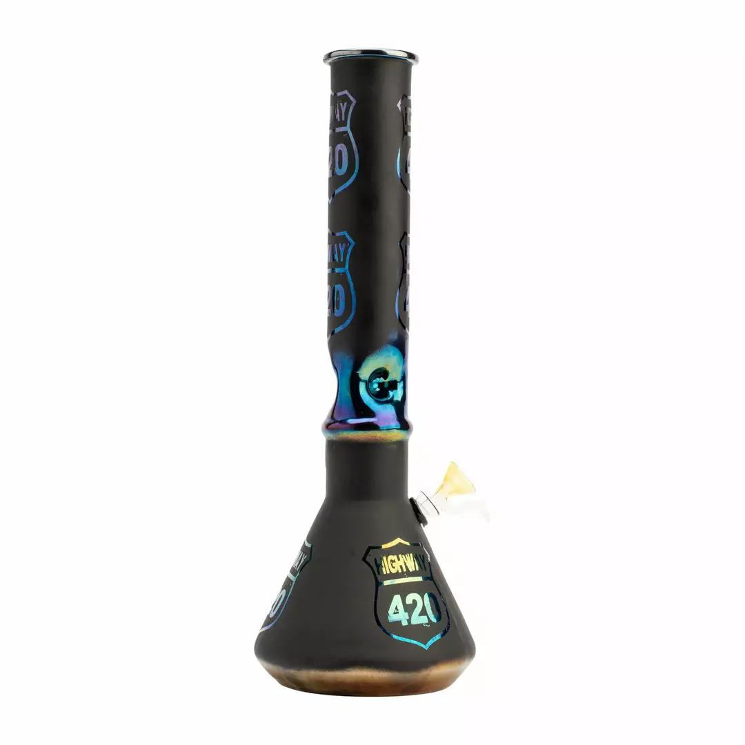 West Coast Gifts Retro Glass Metallic Hwy 420 Beaker Base Tube With Ice Pinch Bongs