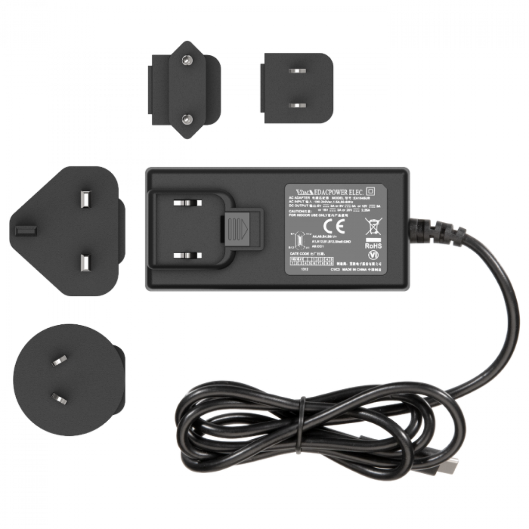 Quick charger with 4 plugs. The quick charger enables fast charging of the battery and maintains operation of the Mighty+ when the battery is empty. Due to the four interchangeable plugs, the Mighty+ can be used almost anywhere in the world.
