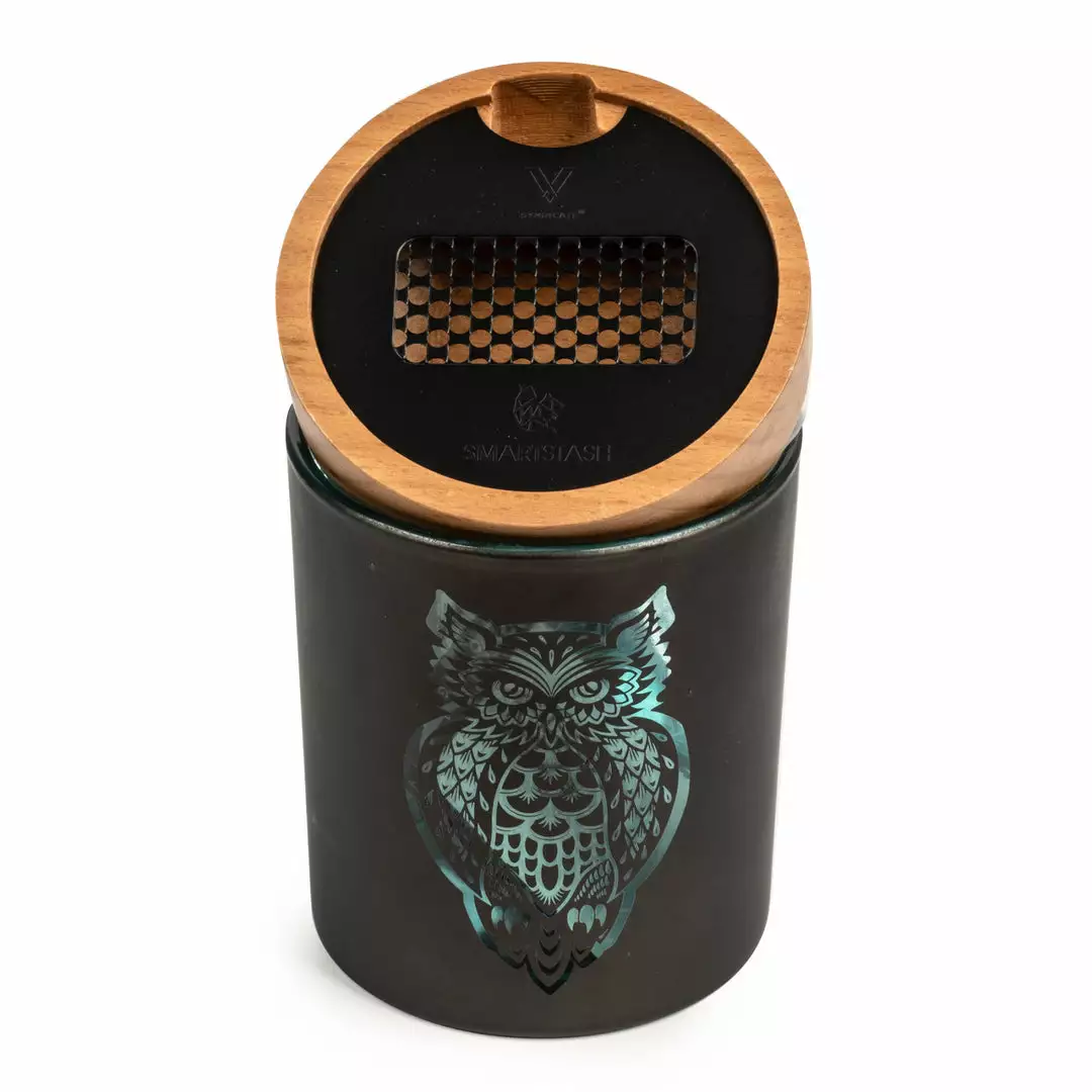 This evolution in stash jar technology includes a magnetic grinder plate and a stylish “Owllusion” design. Some say that owls are symbols of wisdom and intelligence… just like whoever smokes what’s in the jar