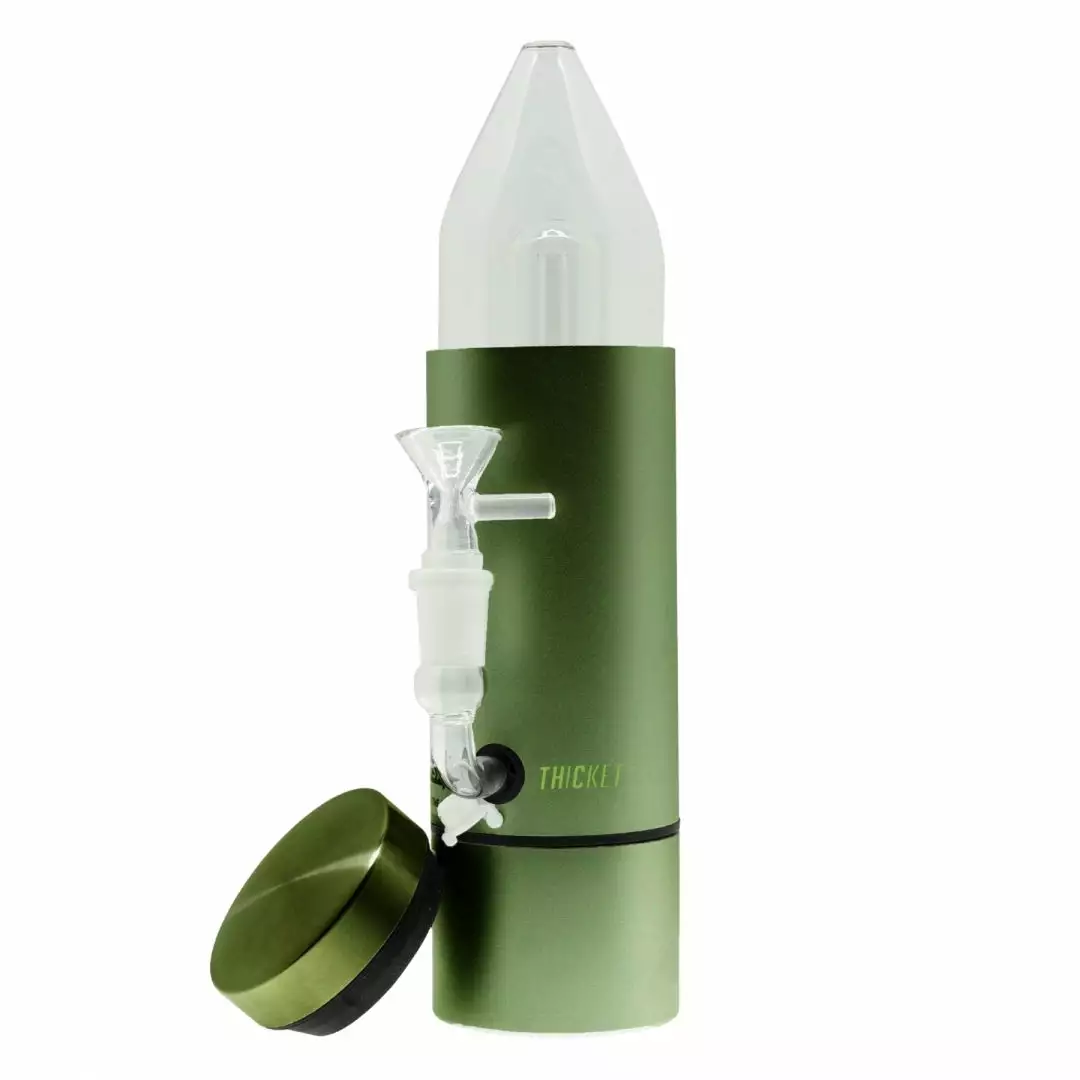 The Thicket Water Pipe is an innovative take on a classic water pipe. Each one features an enclosed percolation filtration system and a hidden space to store the glass bowl attachments and accessories. Simply pull up the inner glass enclosure, attach the accessories, add water, and enjoy!